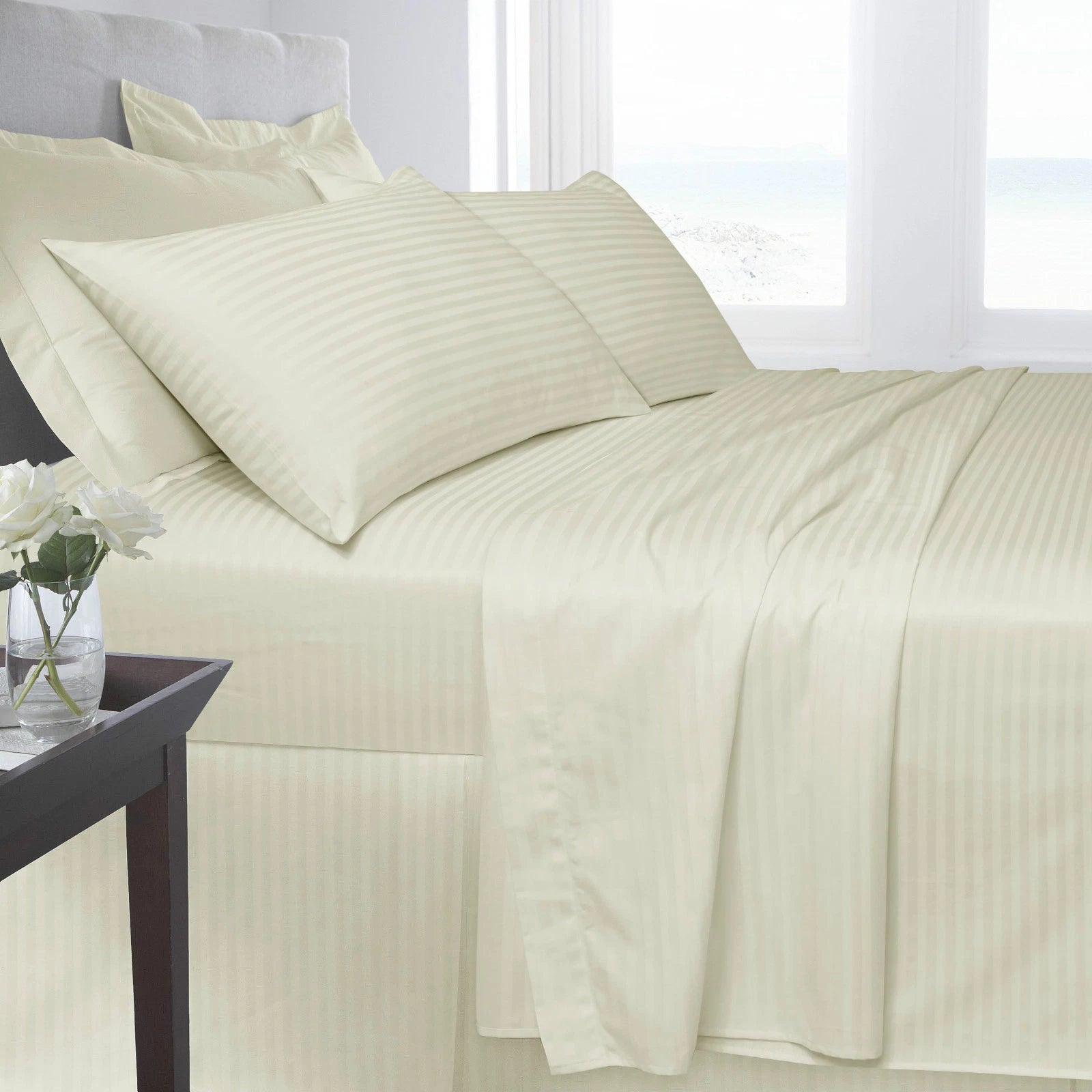 Elegant satin stripe design adds a refined and polished look to your bedding. - 🌿 100% Egyptian Cotton Fabric